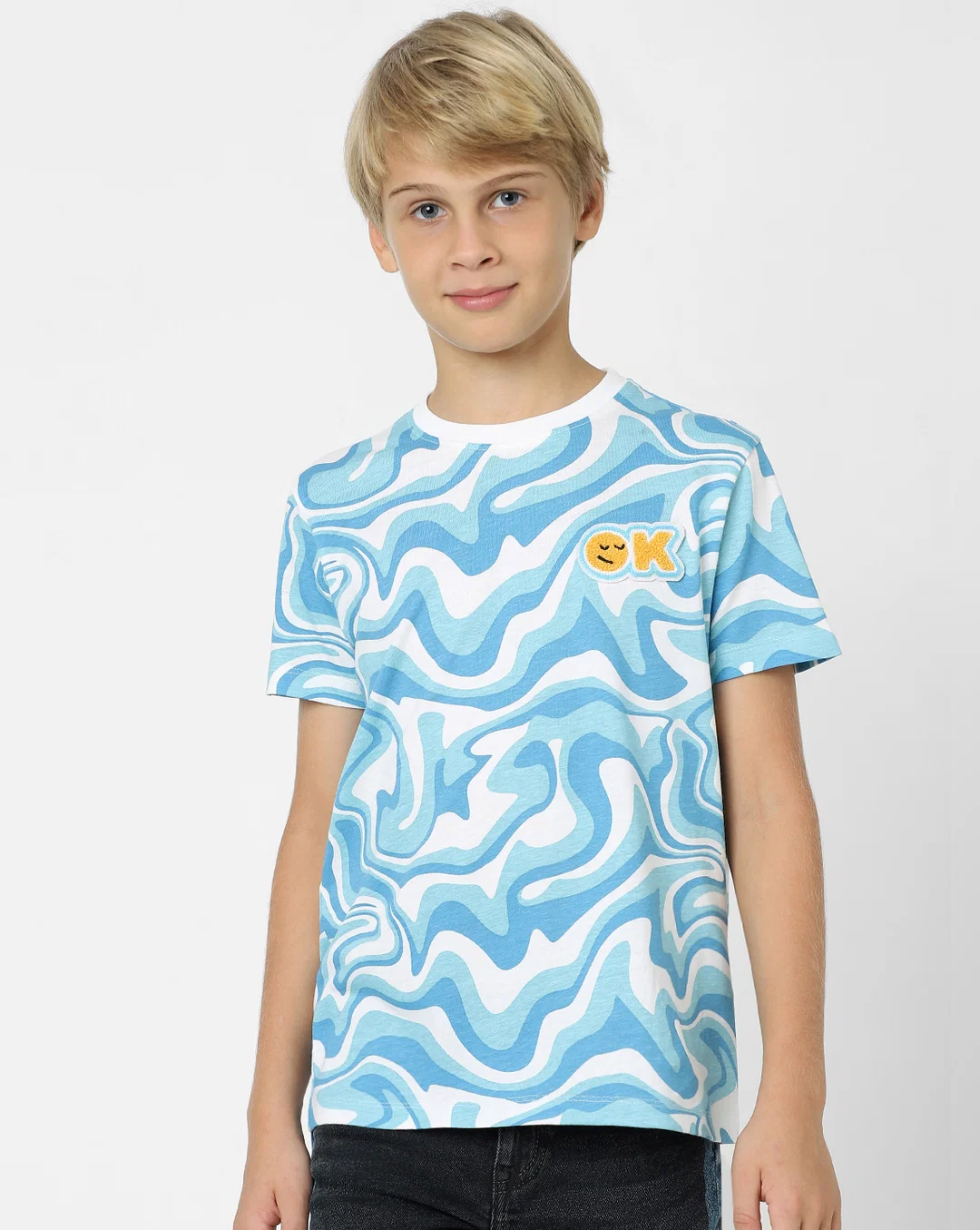 BOYS BLUE ABSTRACT PRINT CREW NECK T-SHIRT