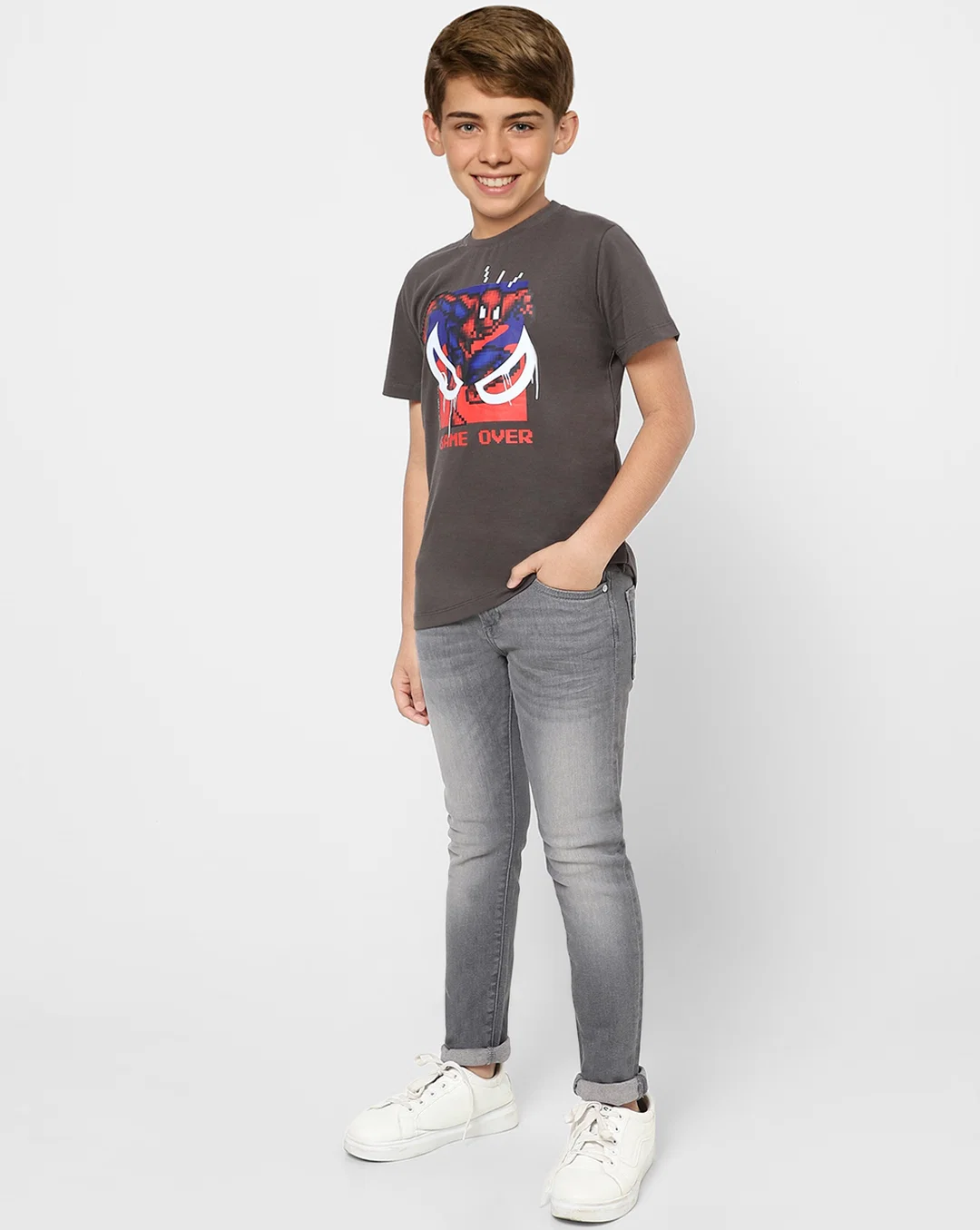 BOYS X MARVEL BLACK SPIDERMAN T-SHIRT